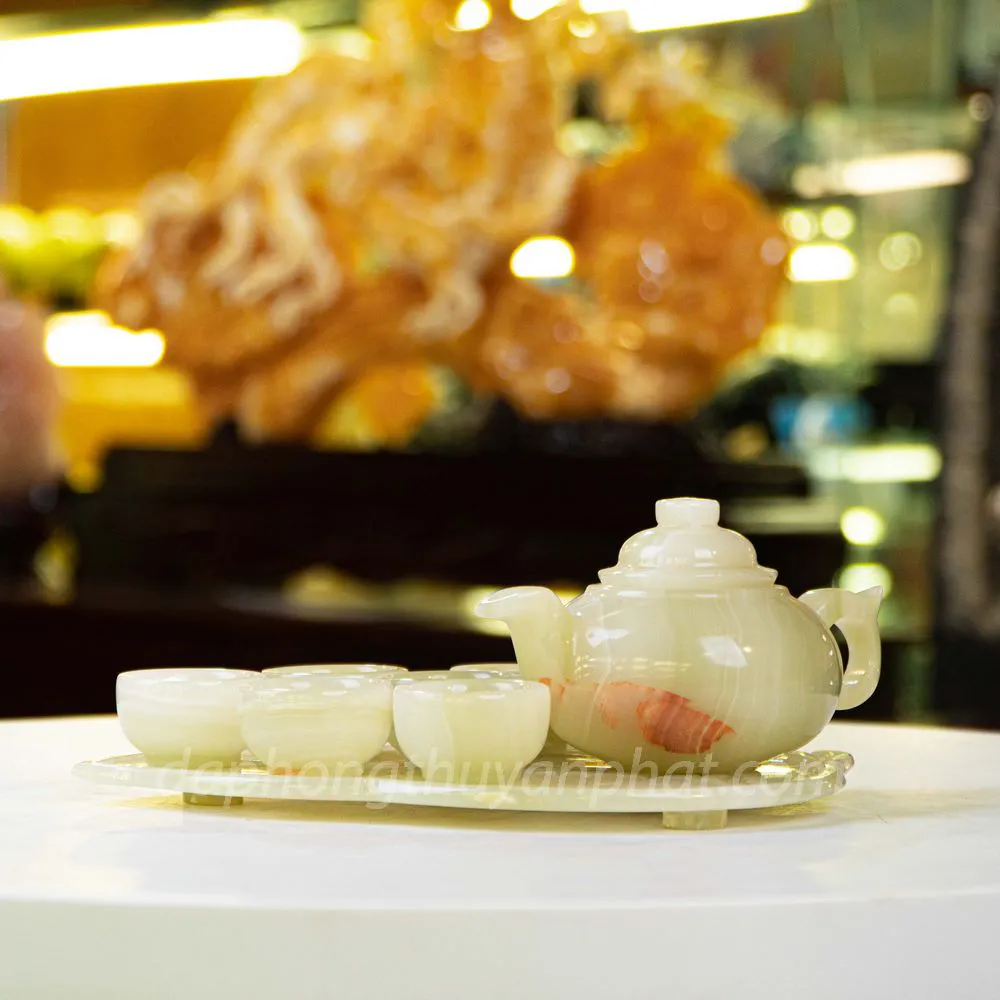 Ý nghĩa bộ ấm chén khay chiếc lá to Ngọc Hoàng Long & Ngọc Onyx Trắng, Xanh
