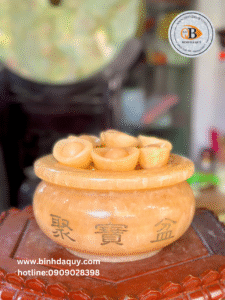 Tại Bình Đá Quý, mỗi sản phẩm đều được kiểm định rõ ràng, có giấy chứng nhận đá tự nhiên, không nhuộm, không ép keo. Từng bát tụ bảo đều được chọn lọc kỹ vân đá, màu sắc, độ trong – và nói thẳng ra là không có chuyện hàng đại trà rập khuôn như hàng xưởng.