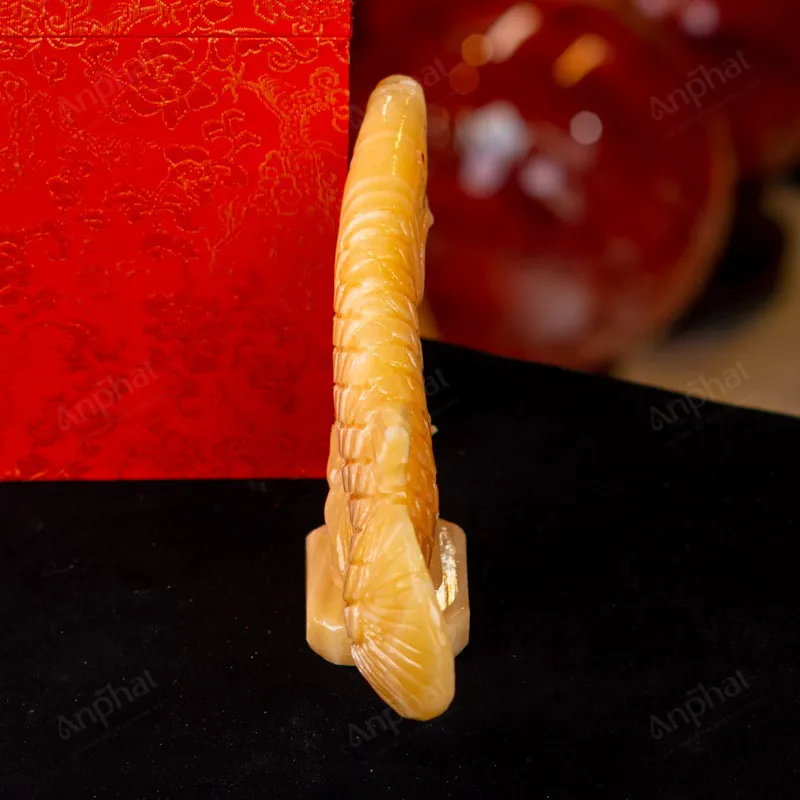 - Trọn bộ sản phẩm bao gồm: Cá rồng + hộp nhung sang trọng + túi giấy đựng sang trọng + dầu dưỡng đá + thiệp + giấy kiểm định chất lượng đá