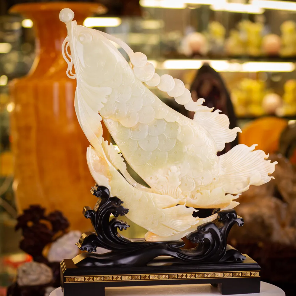 Alt: Cá chép hóa rồng ngọc Onyx xanh cẩm thạch M22991