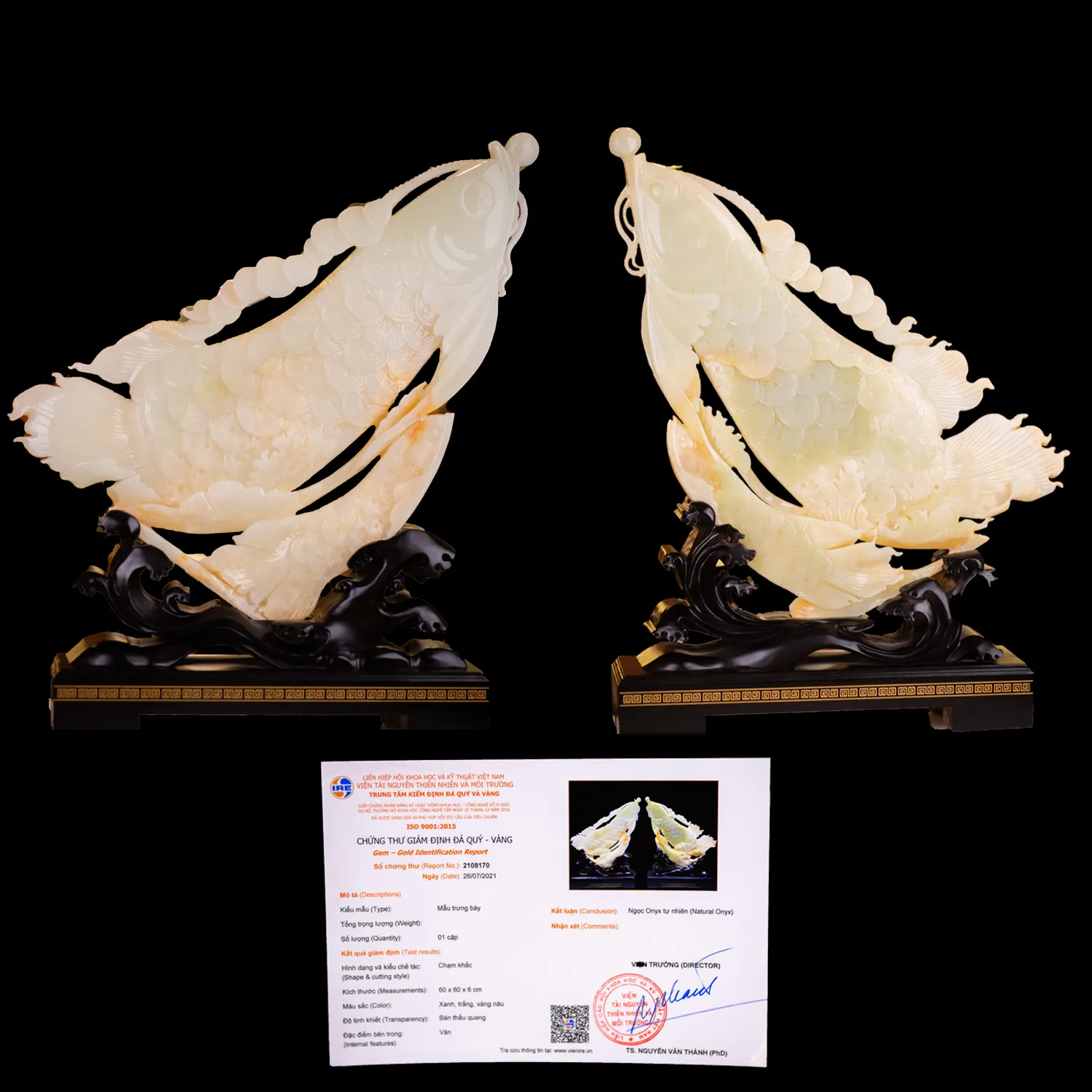 Ý nghĩa phong thủy Cá chép hóa rồng ngọc Onyx M22991