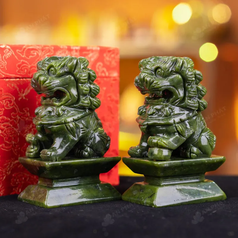 Ảnh cận cảnh cặp Nghê đá serpentine