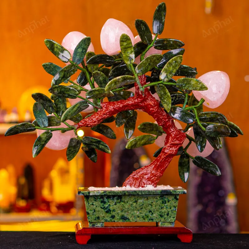 - Chất liệu: Lá – Serpentine, Quả – Thạch Anh Hồng