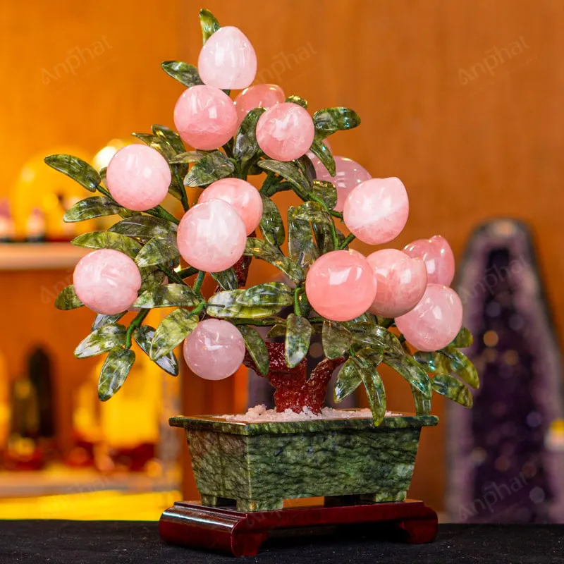- Chất liệu: Lá – Serpentine, Quả – Thạch Anh Hồng