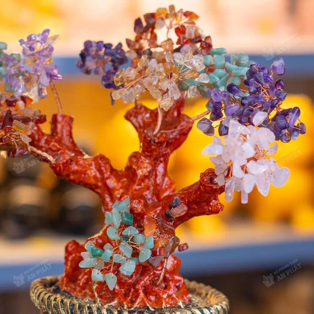 Cây tài lộc để bàn đá thạch anh đa sắc biểu tượng của trường thọ và là biểu tượng của hôn nhân hạnh phúc, có thể giúp người sở hữu có đầu óc sáng suốt và tinh thông, giúp tinh thần thư thái và thoải mái, giảm căng thẳng và mệt mỏi trong công việc và cuộc sống hiệu quả.