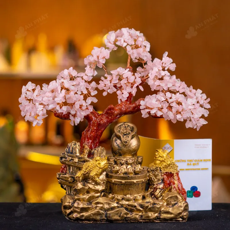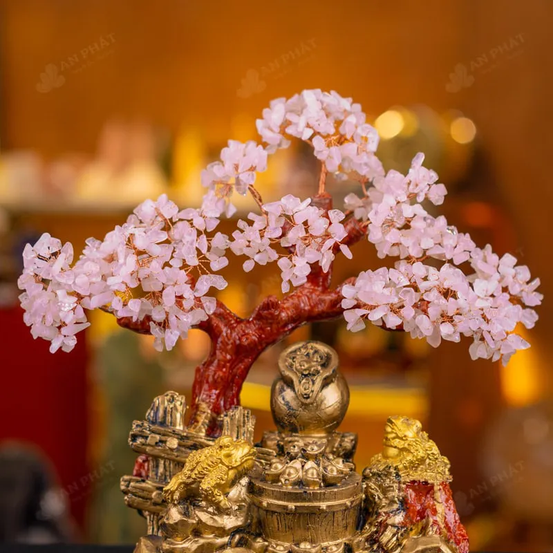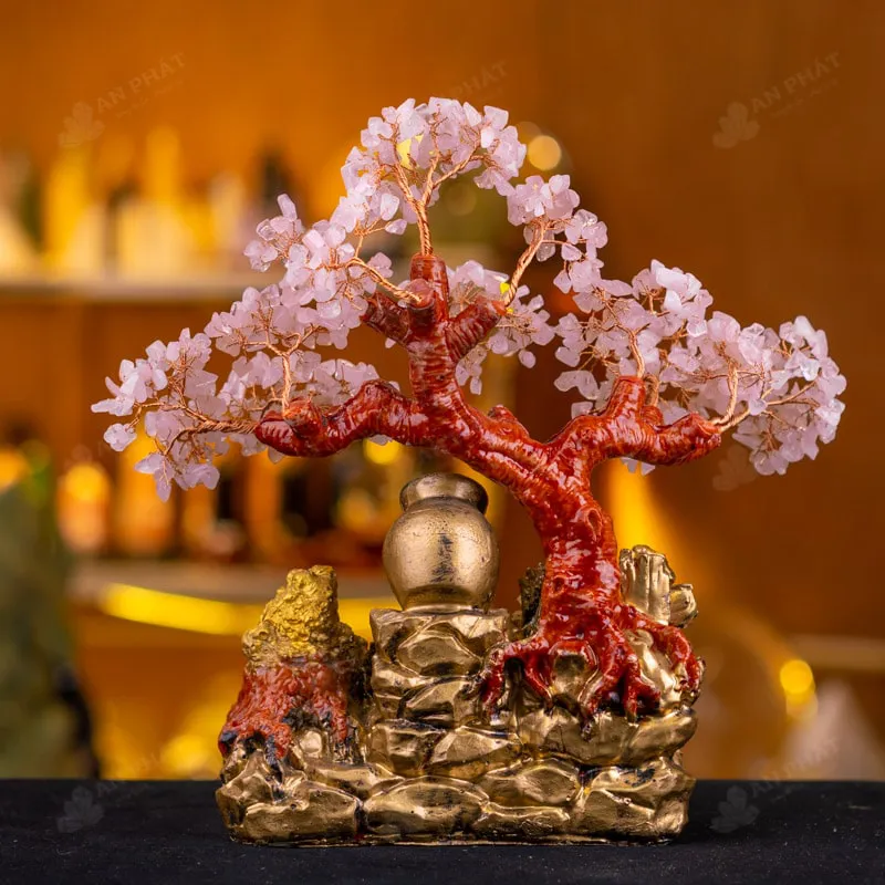 Ảnh cận cảnh cây tài lộc đá thạch anh hồng