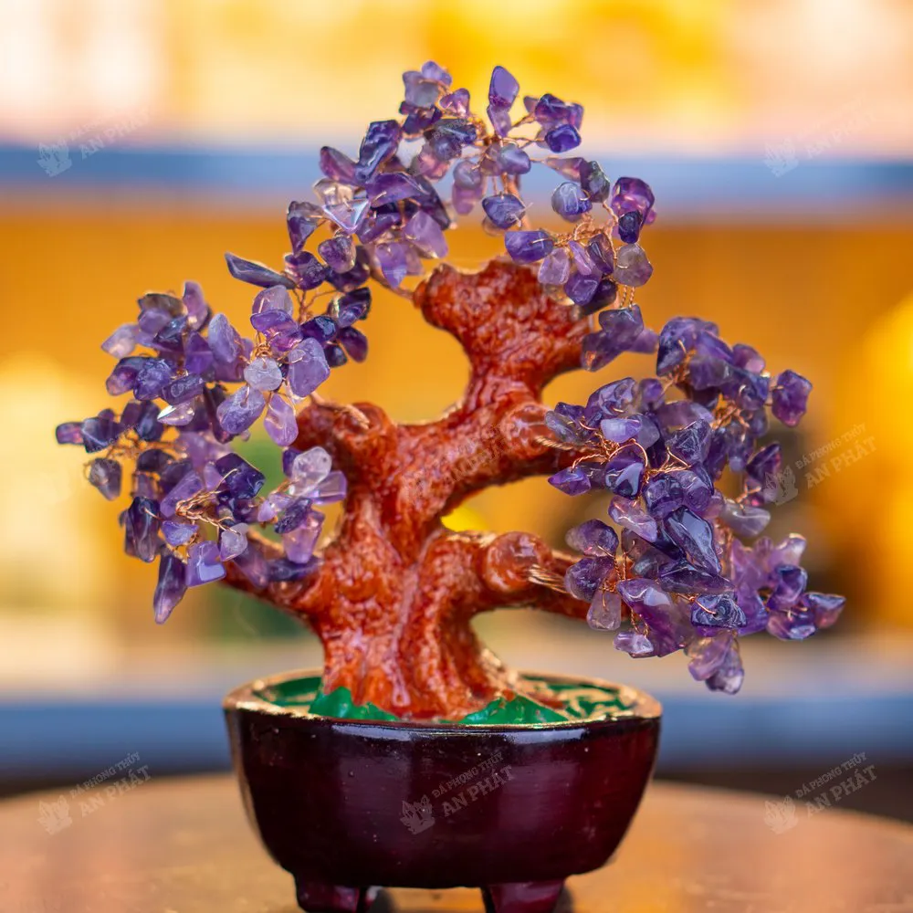 Alt: ý nghĩa cây tài lộc đá thạch anh tím để bàn