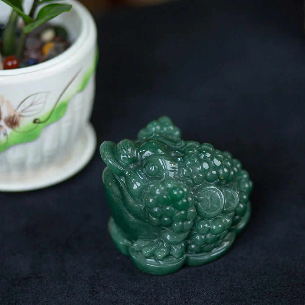 Thiềm thừ là một trong những con vật mang và giữ tiền trong nhà hiệu quả. Chính vì thế mà thiềm thừ khi làm bằng thạch anh xanh ngày càng tạo nên sức hút. Tại Đá Phong Thuỷ An Phát, chúng tôi luôn mang đến những vật phẩm có chất liệu tự nhiên. Ngoài ra, chúng còn được khắc hoạ theo chuẩn mẫu phong thuỷ do chính nghệ nhân hàng đầu trong lĩnh vực chế tác. Do đó, thiềm thừ thạch anh xanh tại đây mang màu sắc xanh của lá vô cùng tự nhiên. Cũng như chất liệu sở hữu độ thấu quang gần như là tuyệt đối.