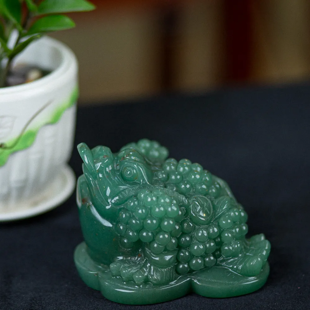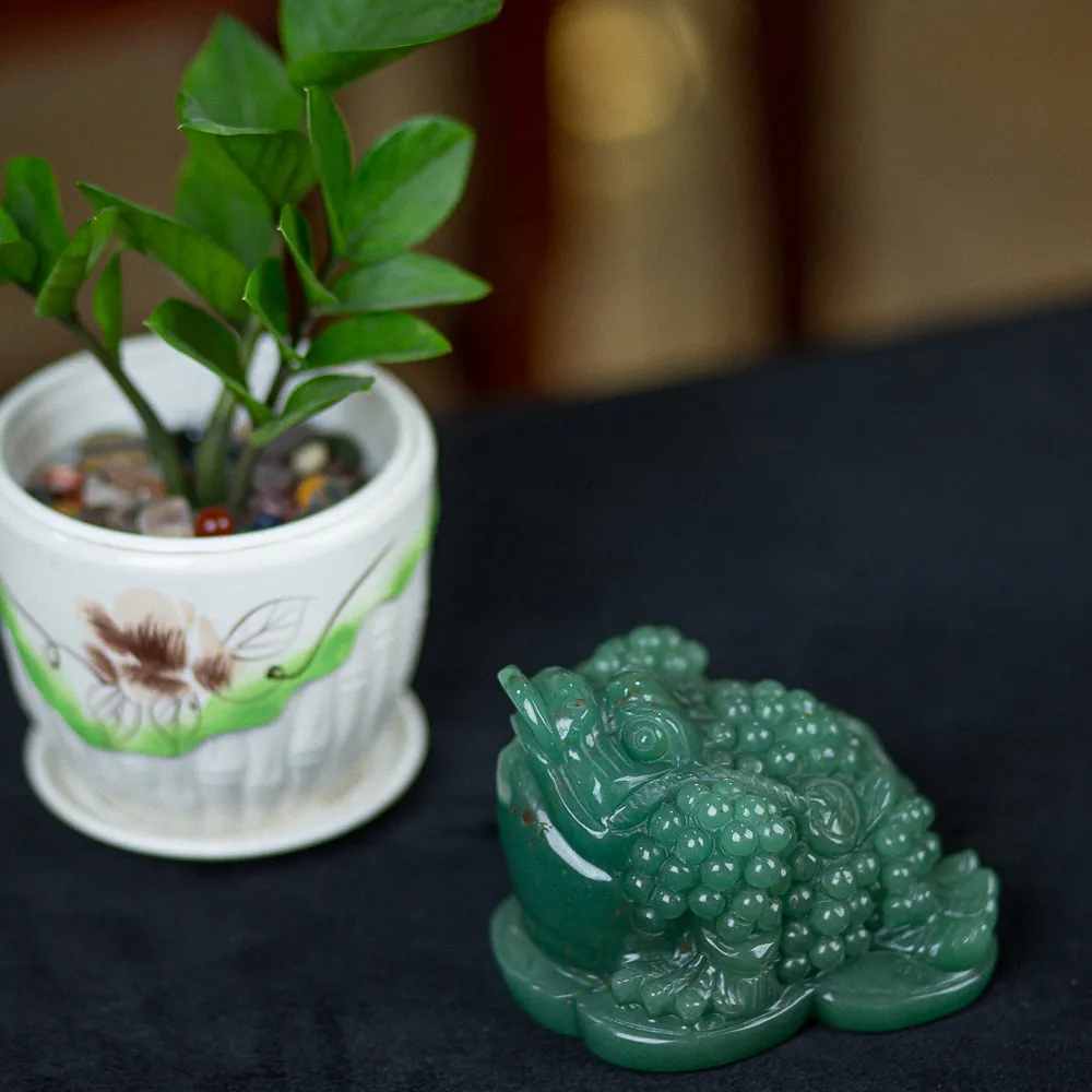 Thiềm thừ là một trong những con vật mang và giữ tiền trong nhà hiệu quả. Chính vì thế mà thiềm thừ khi làm bằng thạch anh xanh ngày càng tạo nên sức hút. Tại Đá Phong Thuỷ An Phát, chúng tôi luôn mang đến những vật phẩm có chất liệu tự nhiên. Ngoài ra, chúng còn được khắc hoạ theo chuẩn mẫu phong thuỷ do chính nghệ nhân hàng đầu trong lĩnh vực chế tác. Do đó, thiềm thừ thạch anh xanh tại đây mang màu sắc xanh của lá vô cùng tự nhiên. Cũng như chất liệu sở hữu độ thấu quang gần như là tuyệt đối.