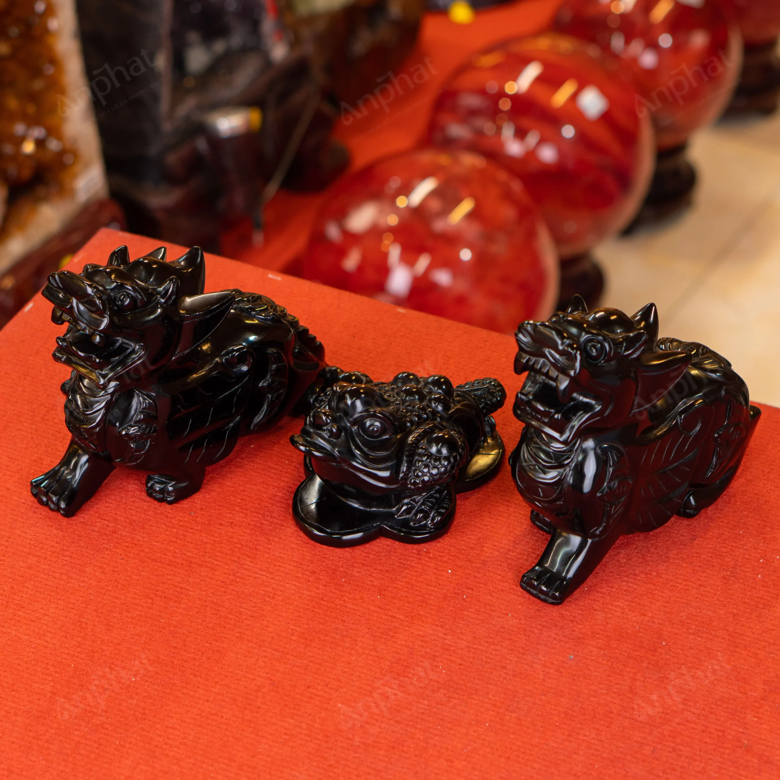 Ảnh cận cảnh combo Thiềm Thù – Tỳ Hưu onyx đen