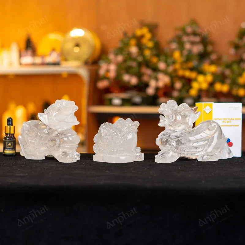 - Trọn bộ sản phẩm bao gồm: Combo linh vật + dầu dưỡng đá + thiệp + giấy kiểm định chất lượng đá + khăn thơm bao sái + giấy hướng dẫn trực tiếp an vị + khai quang tại chùa