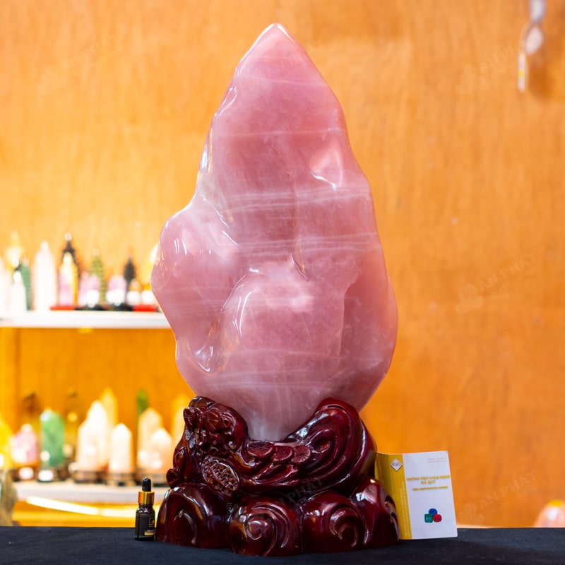 - Chất liệu: Đá Thạch Anh Hồng tự nhiên, nguyên khối