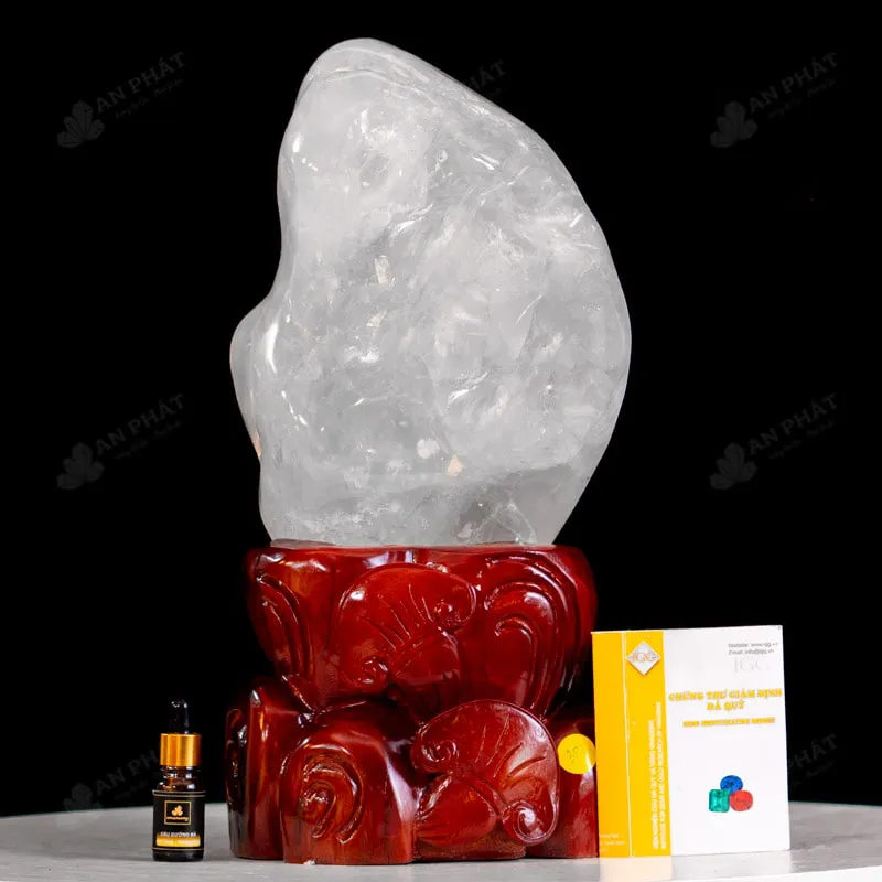 - Trọn bộ sản phẩm bao gồm: đá cảnh + đế gỗ + dầu dưỡng đá + thiệp tặng quà + giấy kiểm định chất lượng đá