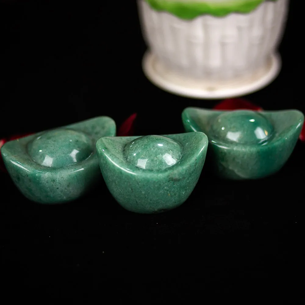 Mẫu vật phẩm kim nguyên bảo tại Đá Phong Thủy An Phát được làm từ chất liệu đá thạch anh xanh tự nhiên 100%. Nén vàng có màu xanh ngọc vô cùng đẹp mặt. Màu xanh của nén vàng rất đẹp và tinh tế, chính vì vậy vật phẩm có thể là vật trang trí mang tính thẩm mỹ cao. Sản phẩm này hiện ở Đá phong Thủy gồm 3 kích thước khác nhau, tùy vào mục đích sử dụng mà khách hàng có thể lựa chọn và yêu cầu An Phát chúng tôi chế tác.