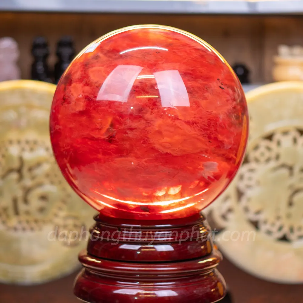 Quả Cầu Phong Thủy Đá núi lửa đỏ với sắc đỏ tự nhiên từ đá thạch anh. Hình thành trên miệng núi lửa. Trải qua hàng triệu năm, hấp thụ tinh hoa của thiên nhiên, đất trời. Đem đến sản phẩm có ý nghĩa phong thủy lớn lao. Xua tan đi những căng thẳng và mệt mỏi. Đặc biệt với những ai theo đuổi sự nghiệp học hành thì đá núi lửa sẽ giúp hỗ trợ trí tuệ, làm việc và học tập hiệu quả hơn.