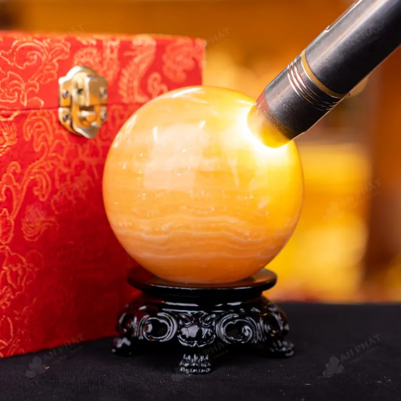 Quả Cầu Đá Phong Thủy Hoàng Long (Onyx) Vàng – 0,69kg – M1836069