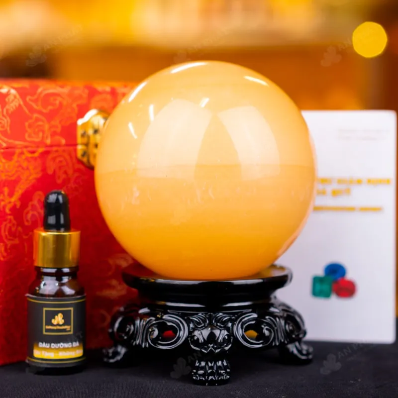 - Trọn bộ sản phẩm bao gồm: quả cầu + 01 đế gỗ + hộp đựng sang trọng + túi giấy sang trọng + dầu dưỡng đá + thiệp + giấy kiểm định chất lượng đá