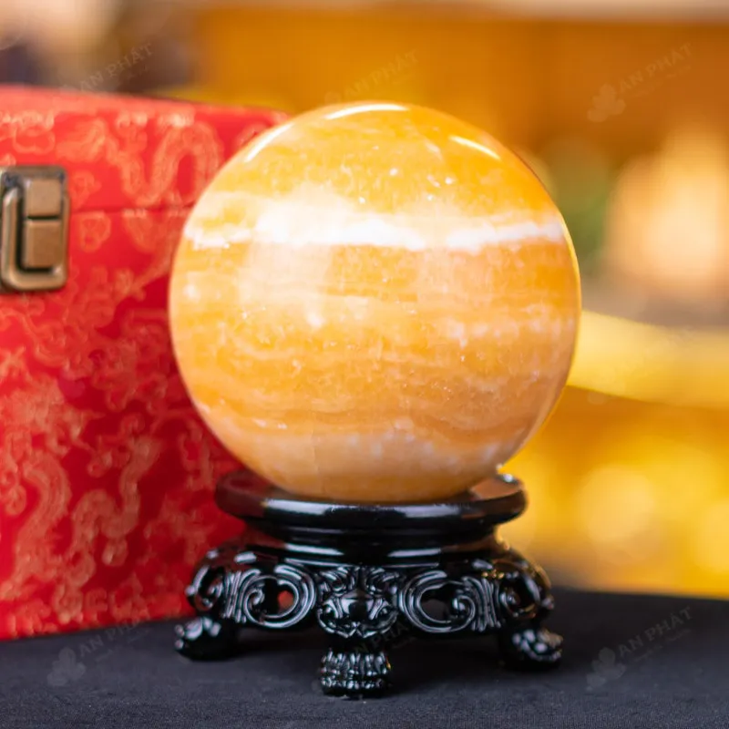 Quả Cầu Đá Phong Thủy Hoàng Long (Onyx) Vàng – 2,38kg – M1836238