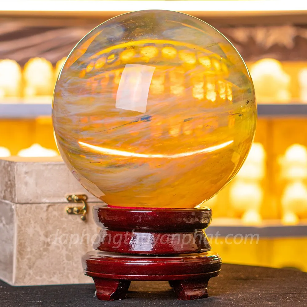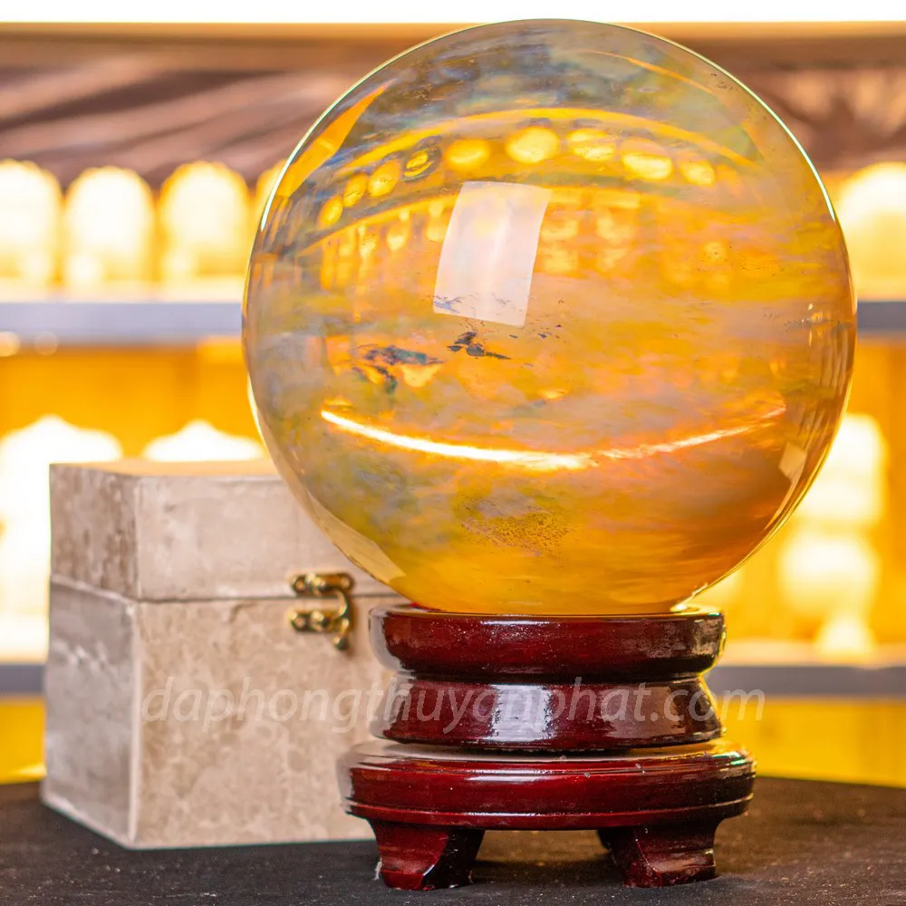 Quả Cầu Đá Phong Thủy Màu Vàng | Đá Obsidian Vàng – 15,8kg – 22cm M19229