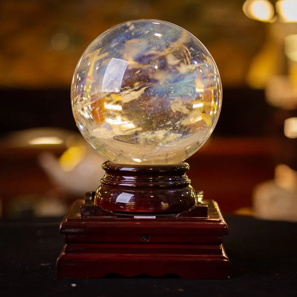 Quả cầu phong thủy hay còn được gọi là quả cầu đá núi lửa màu vàng. Là vật phẩm phong thủy được chế tác từ đá thạch obsidian vàng.