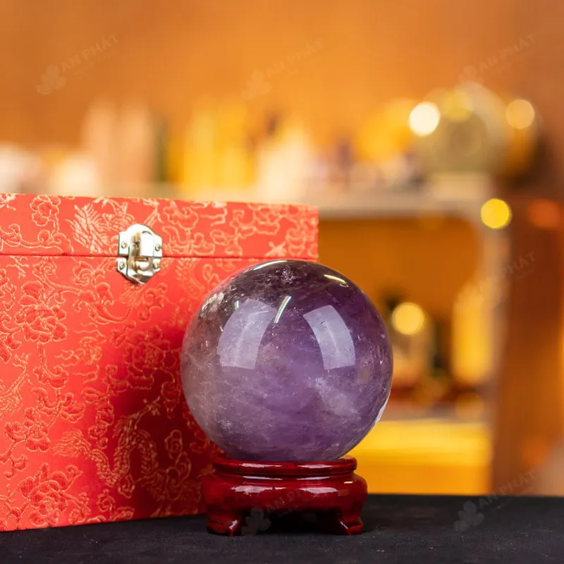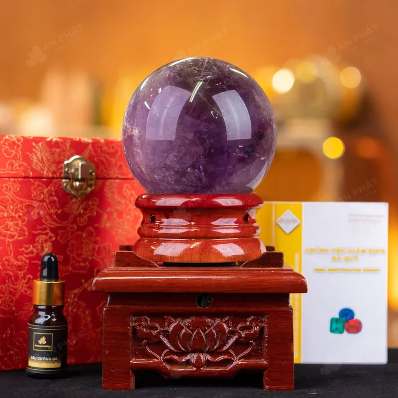 - Trọn bộ sản phẩm bao gồm: quả cầu + 01 đế gỗ + hộp đựng sang trọng + túi giấy sang trọng + dầu dưỡng đá + giấy kiểm định chất lượng đá