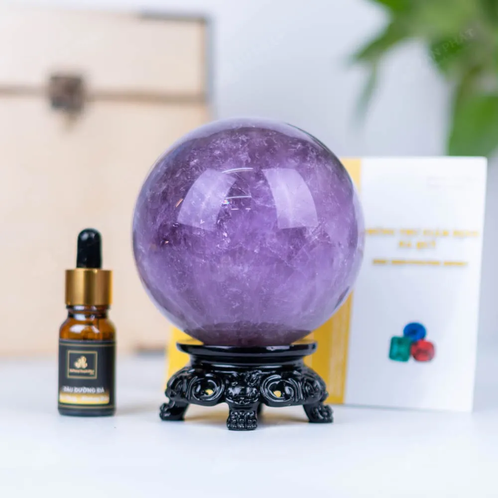 - Trọn bộ sản phẩm bao gồm: quả cầu + đế gỗ + hộp đựng sang trọng + túi giấy sang trọng + dầu dưỡng đá + giấy kiểm định chất lượng đá
