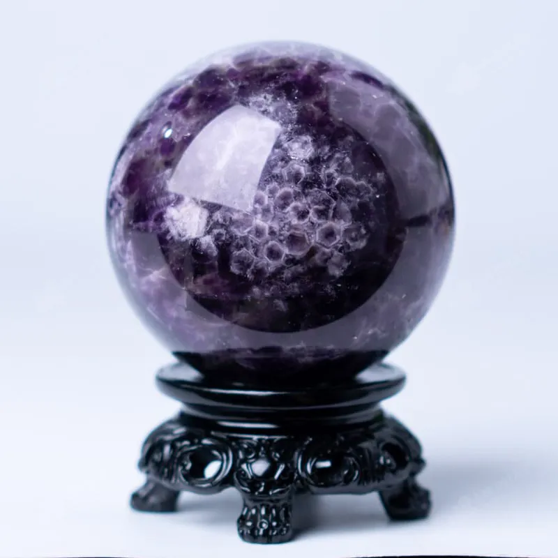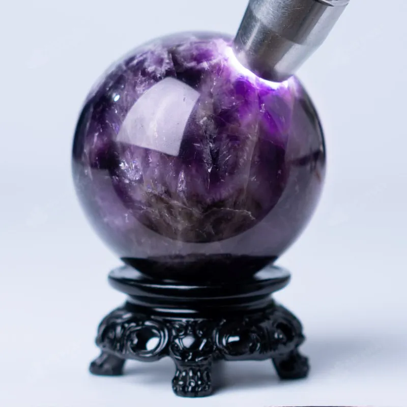 Ảnh cận cảnh quả cầu đá thạch anh tím hoa chanh