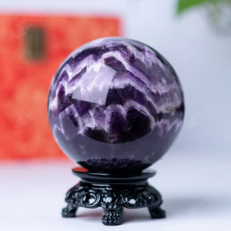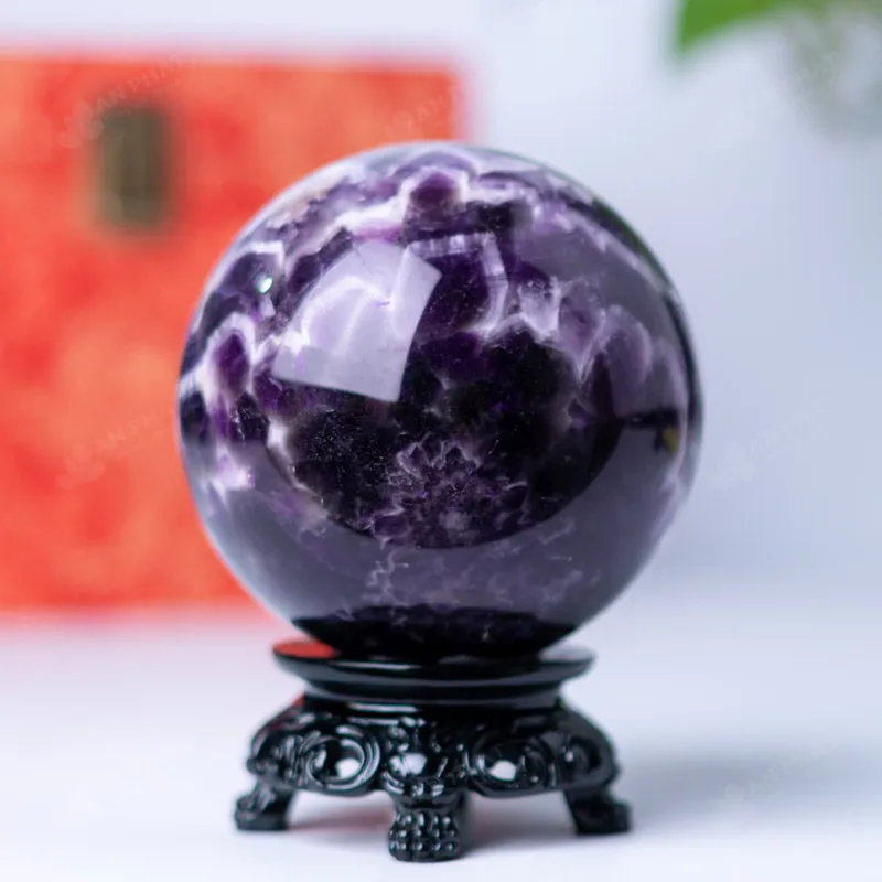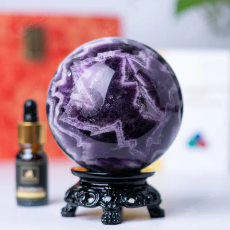 Ảnh cận cảnh quả cầu đá thạch anh tím hoa chanh