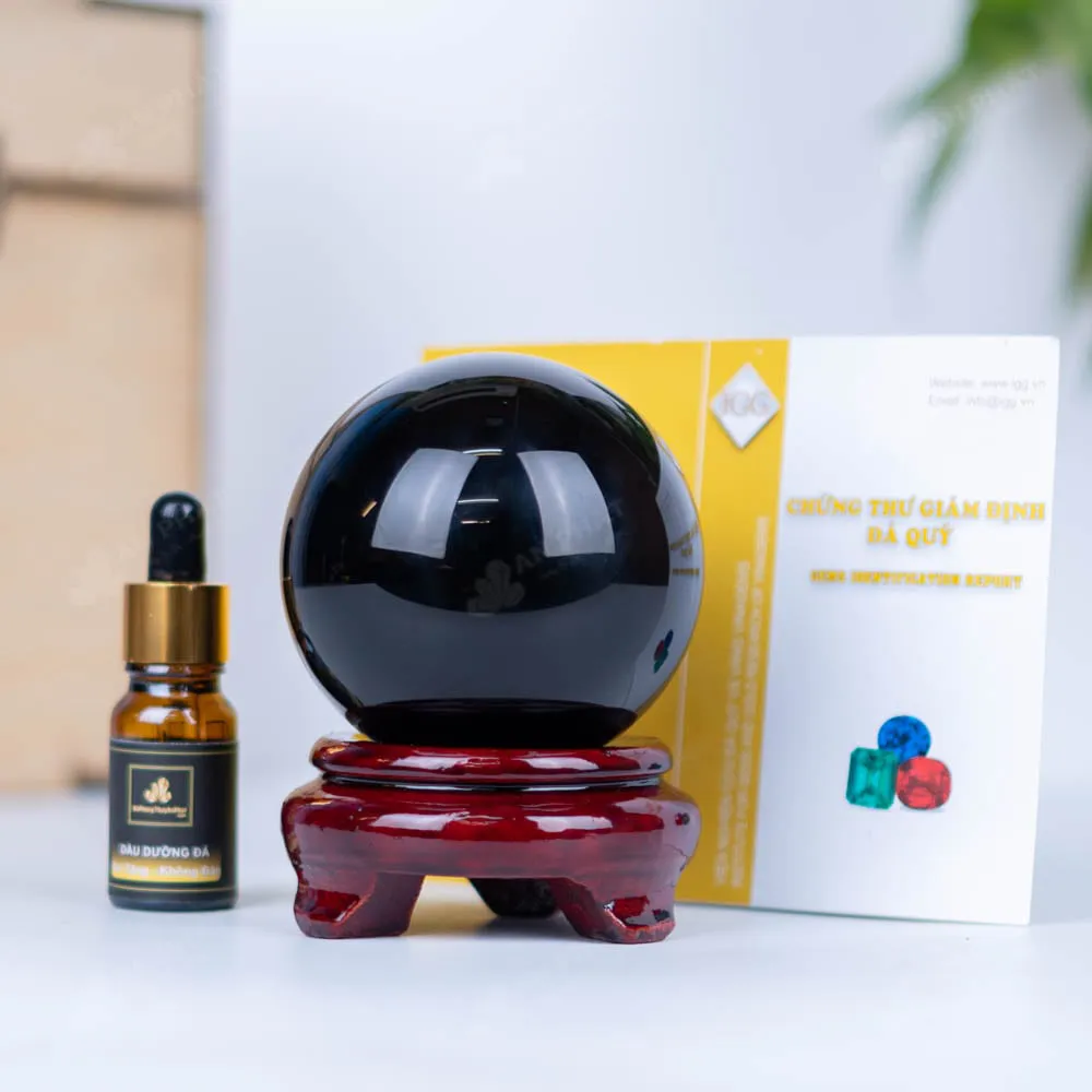 - Trọn bộ sản phẩm bao gồm: quả cầu + đế gỗ + hộp đựng sang trọng + túi giấy sang trọng + dầu dưỡng đá + giấy kiểm định chất lượng đá