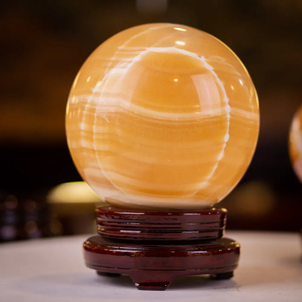 Alt: Giá trị phong thủy khi sử dụng quả cầu đá Onyx vàng