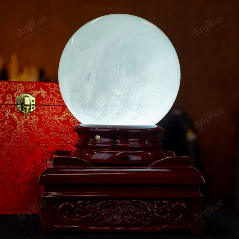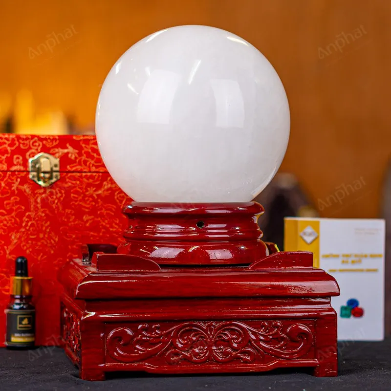 - Trọn bộ sản phẩm bao gồm: quả cầu + 01 đế gỗ + hộp đựng sang trọng + túi giấy sang trọng + dầu dưỡng đá + thiệp + giấy kiểm định chất lượng đá