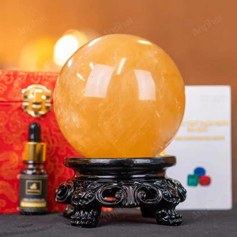 Quả Cầu Phong Thủy Canxit Vàng – 1,7kg – M290617