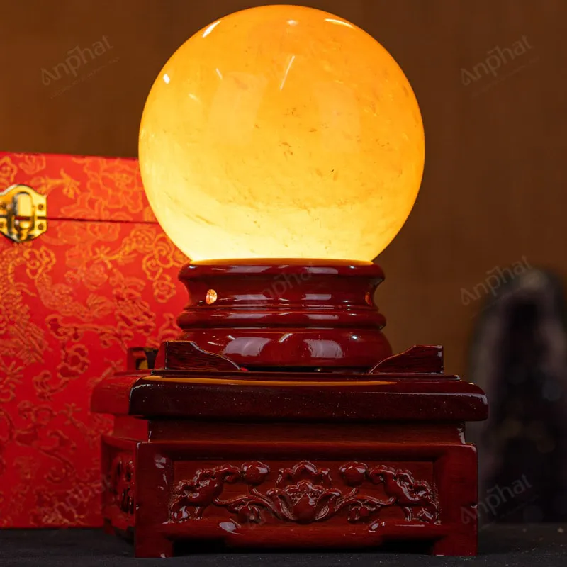 - Trọn bộ sản phẩm bao gồm: quả cầu + 01 đế gỗ + hộp đựng sang trọng + túi giấy sang trọng + dầu dưỡng đá + thiệp + giấy kiểm định chất lượng đá
