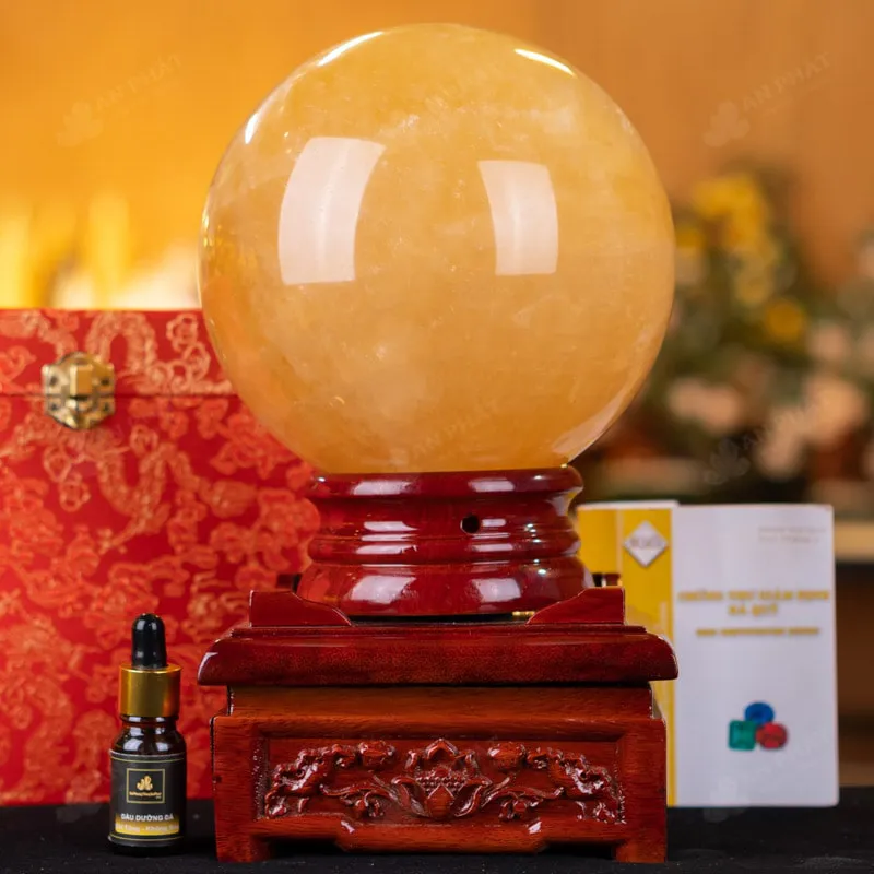- Trọn bộ sản phẩm bao gồm: quả cầu + 01 đế gỗ + hộp đựng sang trọng + túi giấy sang trọng + dầu dưỡng đá + thiệp + giấy kiểm định chất lượng đá