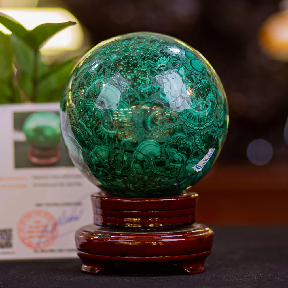 Qủa cầu phong thủy đá lông công có tính thẩm mỹ vô cùng cao. Đem đến vẻ đẹp sang trọng, quyền uy, toát lên vẻ đẹp quyền lực của người lãnh đạo. Thường được đặt tại các vị trí như bàn làm việc, kệ sách, phòng khách,…