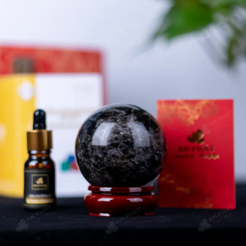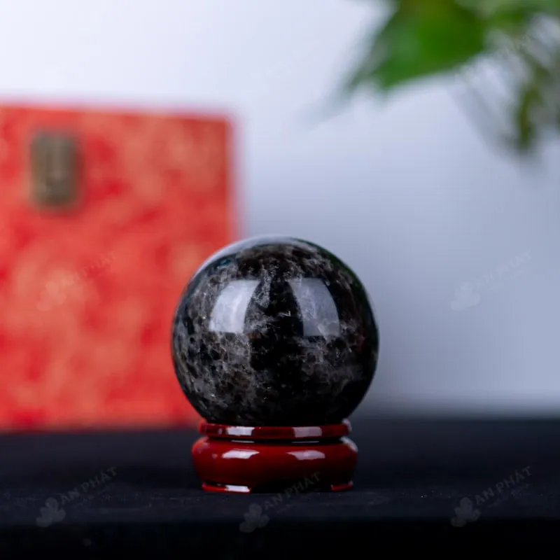 Ảnh cận cảnh quả cầu đá thạch anh đen