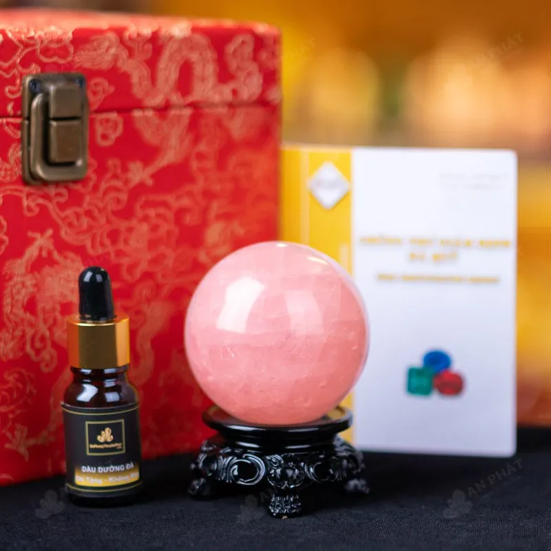 - Trọn bộ sản phẩm bao gồm: quả cầu + 01 đế gỗ + hộp đựng sang trọng + túi giấy sang trọng + dầu dưỡng đá + giấy kiểm định chất lượng đá