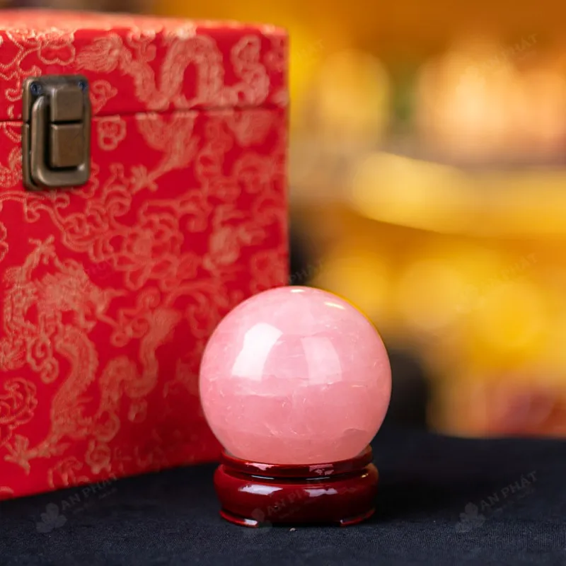 Ảnh cận cảnh quả cầu đá thạch anh hồng