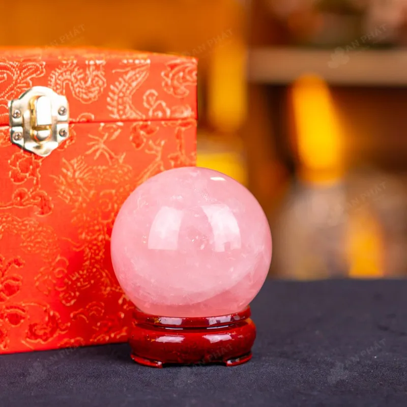 Ảnh cận cảnh quả cầu đá thạch anh hồng