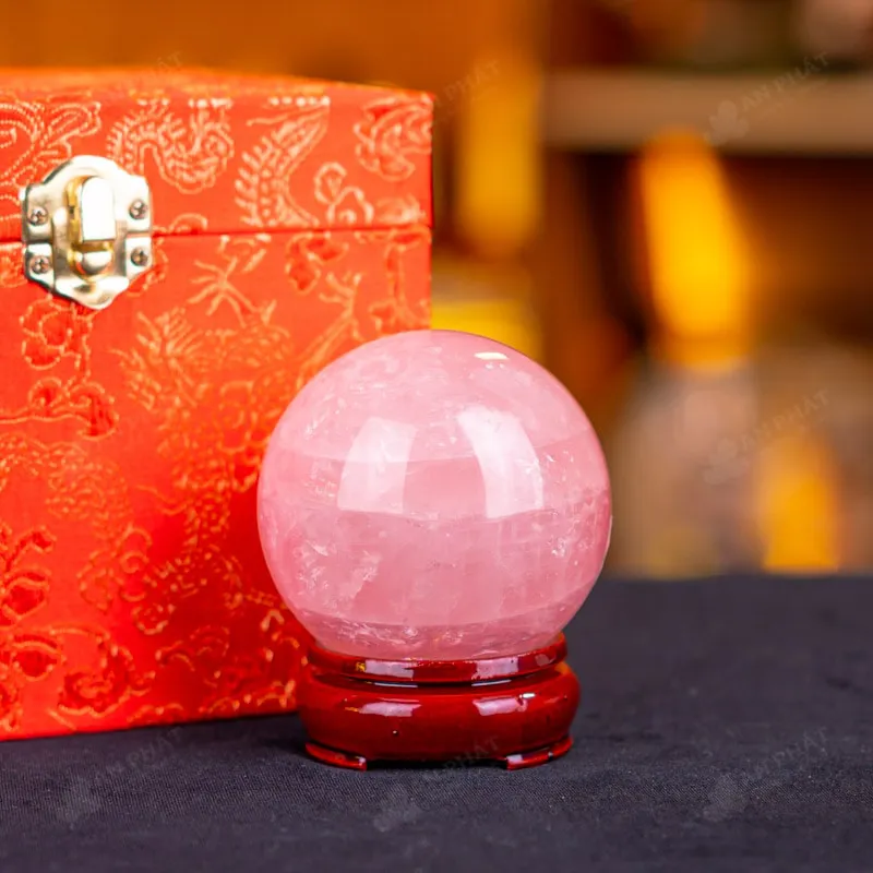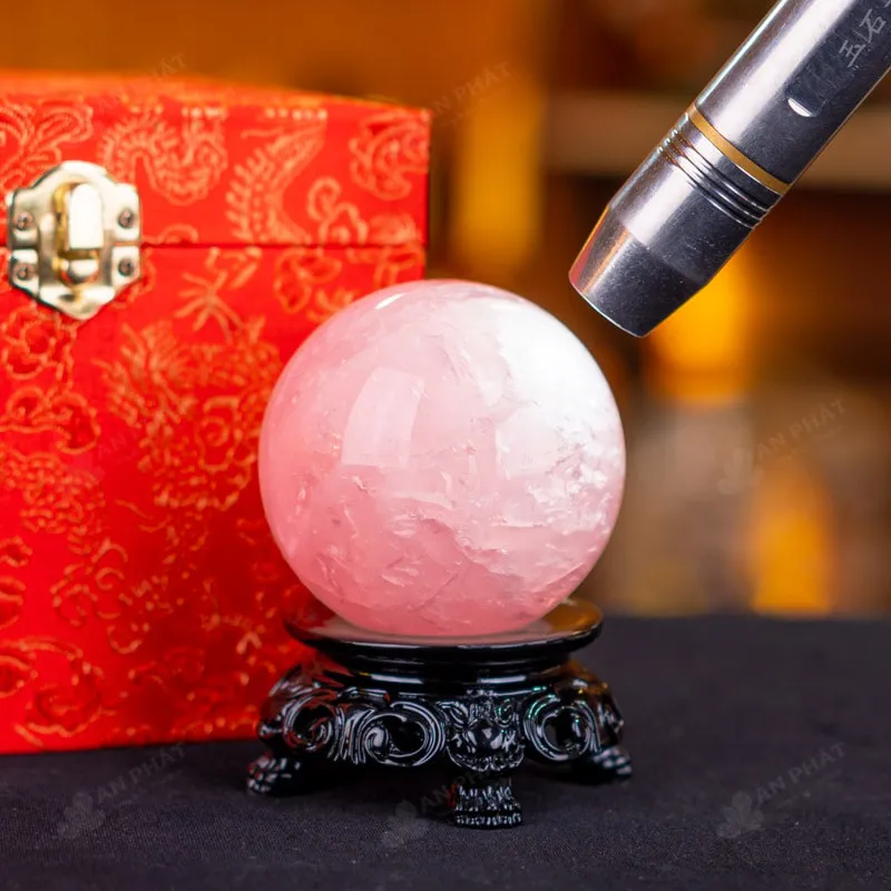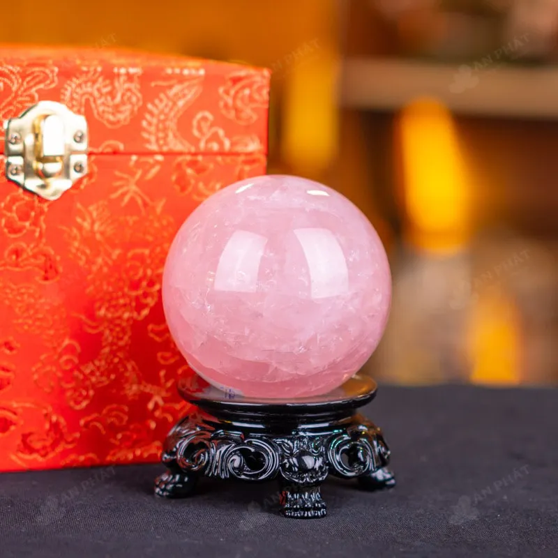 Ảnh cận cảnh quả cầu đá thạch anh hồng