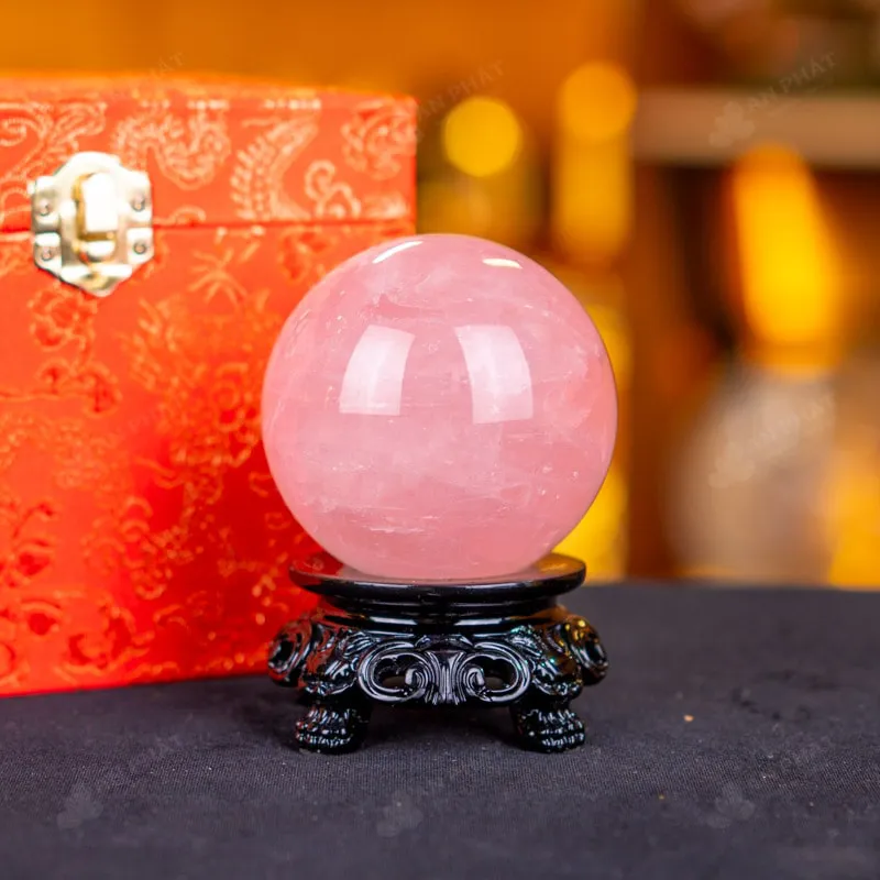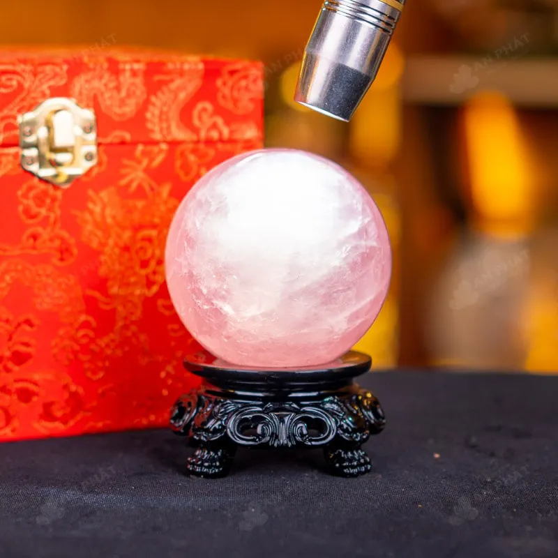 Ảnh cận cảnh quả cầu đá thạch anh hồng