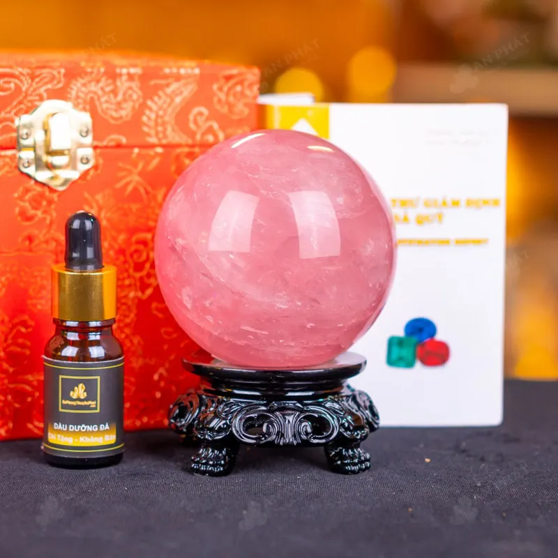 - Trọn bộ sản phẩm bao gồm: quả cầu + 01 đế gỗ + hộp đựng sang trọng + túi giấy sang trọng + dầu dưỡng đá + thiệp + giấy kiểm định chất lượng đá