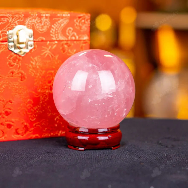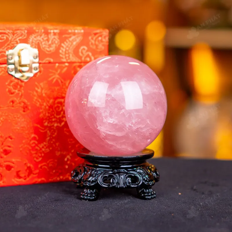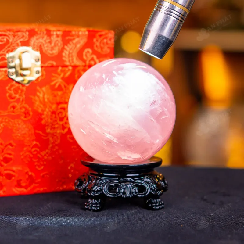Ảnh cận cảnh quả cầu đá thạch anh hồng