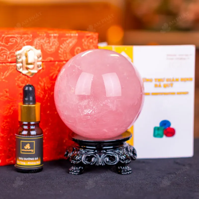 - Trọn bộ sản phẩm bao gồm: quả cầu + 01 đế gỗ + hộp đựng sang trọng + túi giấy sang trọng + dầu dưỡng đá + thiệp + giấy kiểm định chất lượng đá