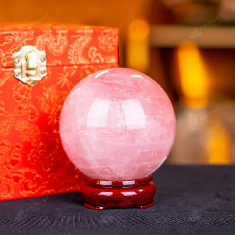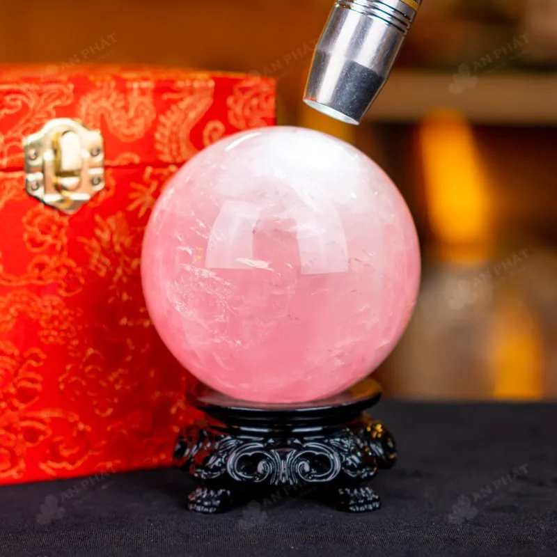 Ảnh cận cảnh quả cầu đá thạch anh hồng