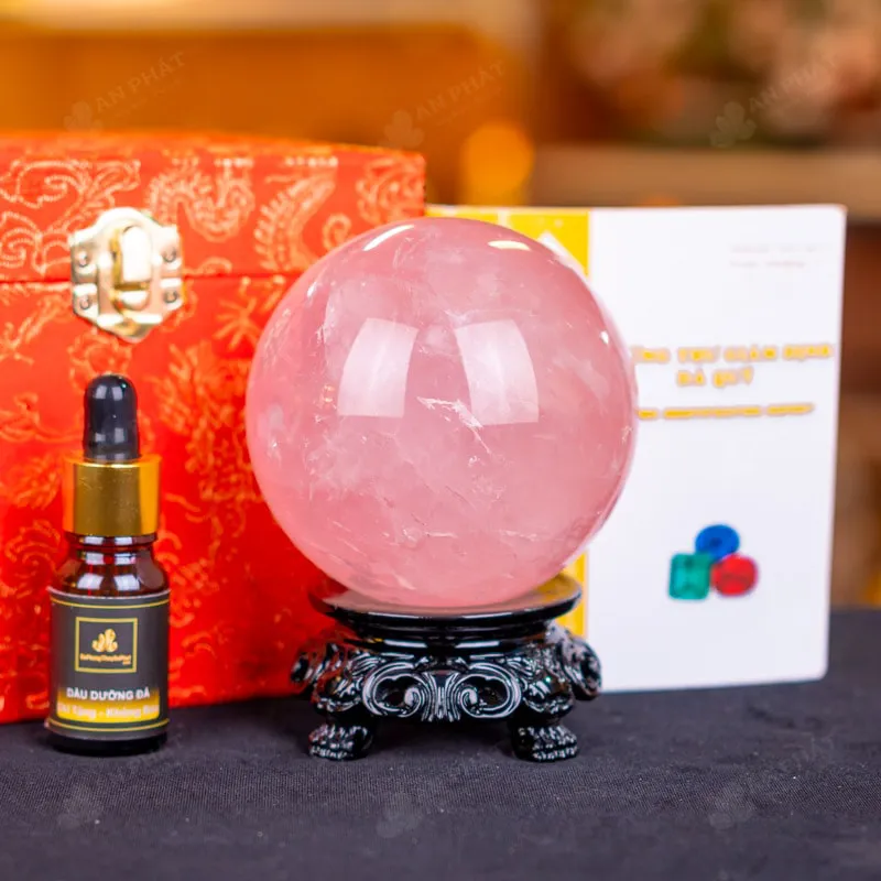 - Trọn bộ sản phẩm bao gồm: quả cầu + 01 đế gỗ + hộp đựng sang trọng + túi giấy sang trọng + dầu dưỡng đá + thiệp + giấy kiểm định chất lượng đá