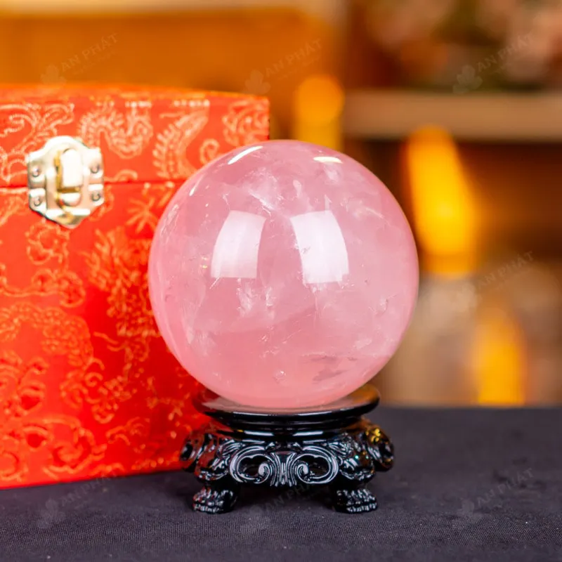 Ảnh cận cảnh quả cầu đá thạch anh hồng
