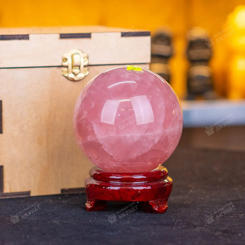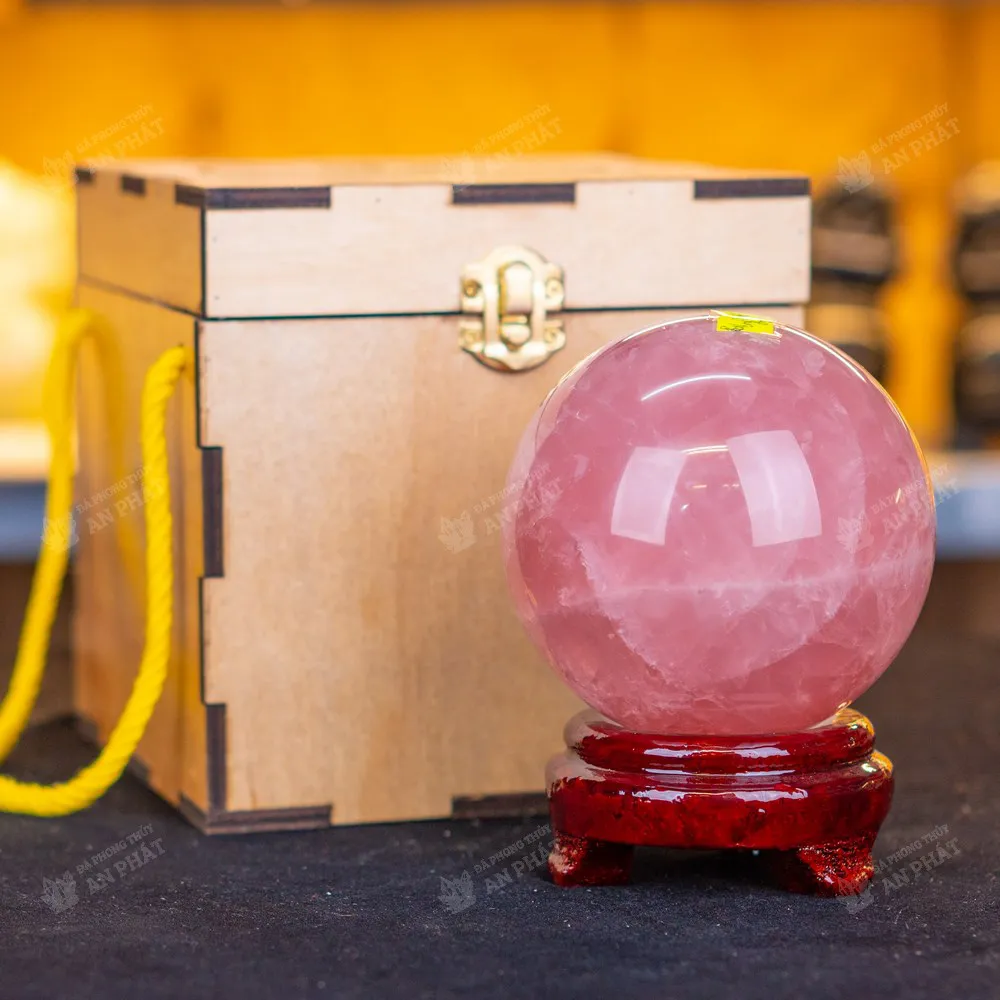 Alt: quả cầu phong thủy đá thạch anh hồng tại An Phát