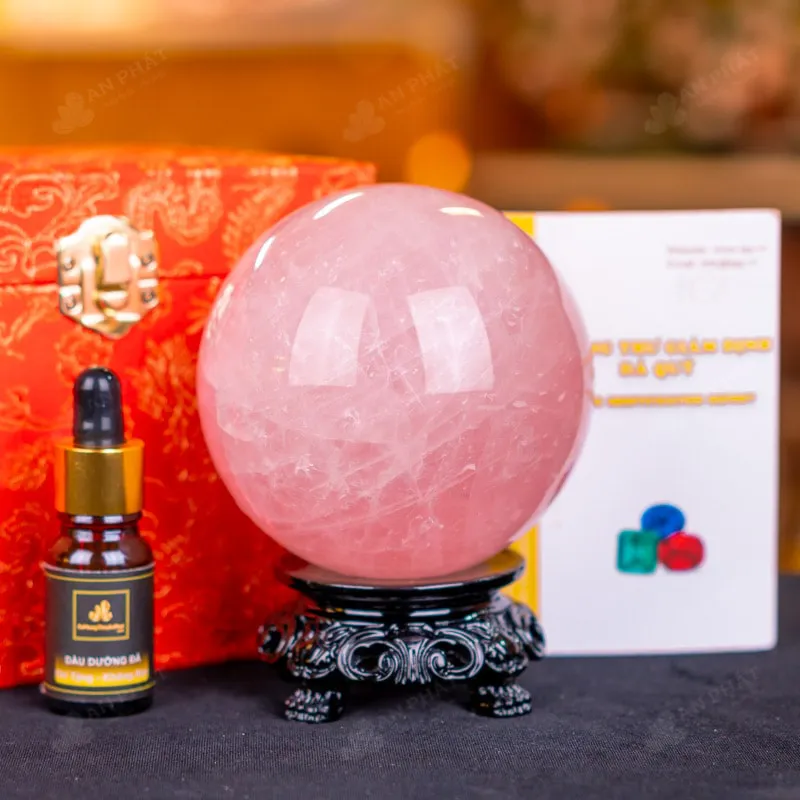 - Trọn bộ sản phẩm bao gồm: quả cầu + 01 đế gỗ + hộp đựng sang trọng + túi giấy sang trọng + dầu dưỡng đá + thiệp + giấy kiểm định chất lượng đá
