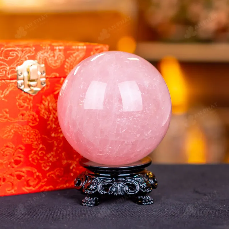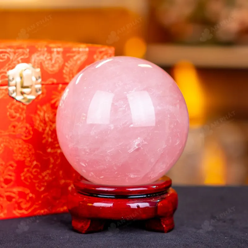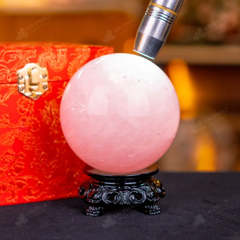 Ảnh cận cảnh quả cầu đá thạch anh hồng